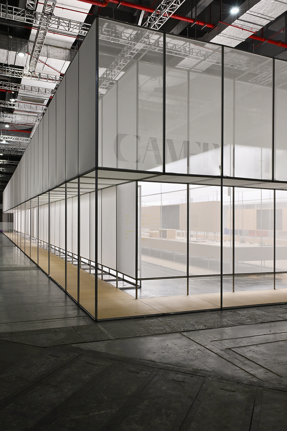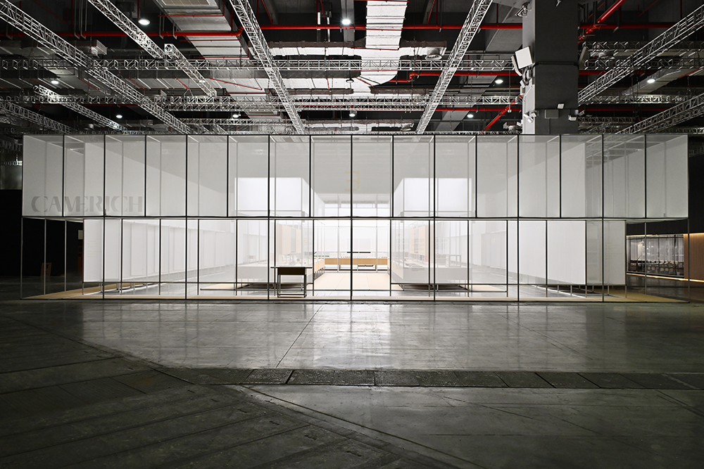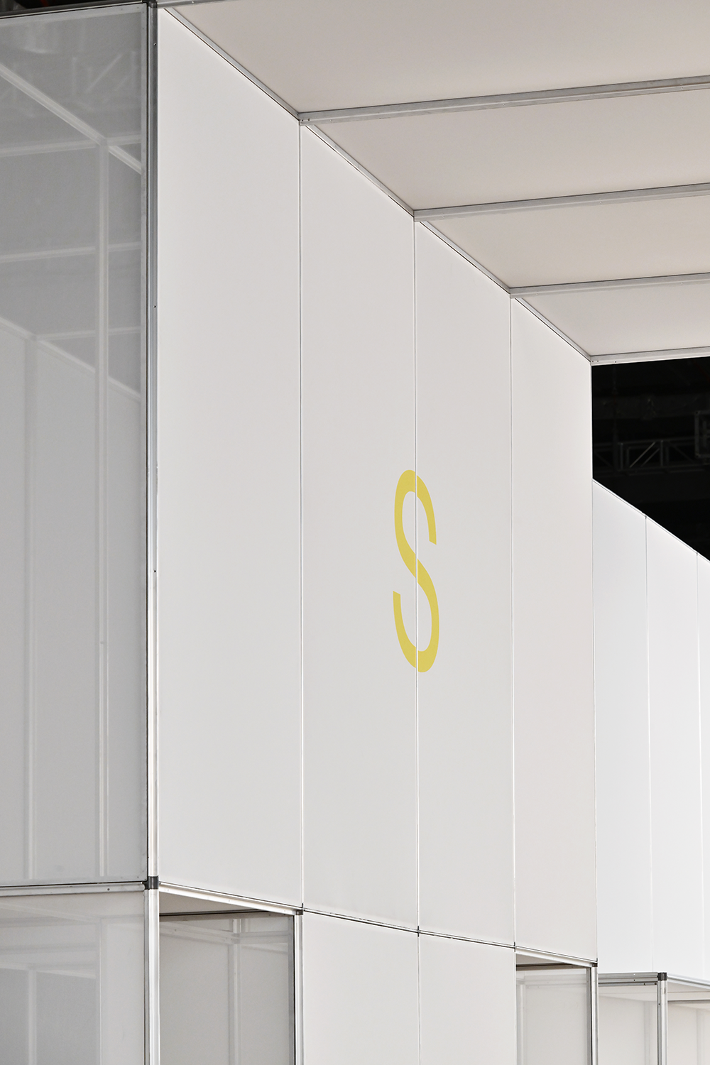 ②搭建展位使用的网布,和蔡烈超团队在自己工作室的设计项目Soft Power中使用的半透弹力布是同款。