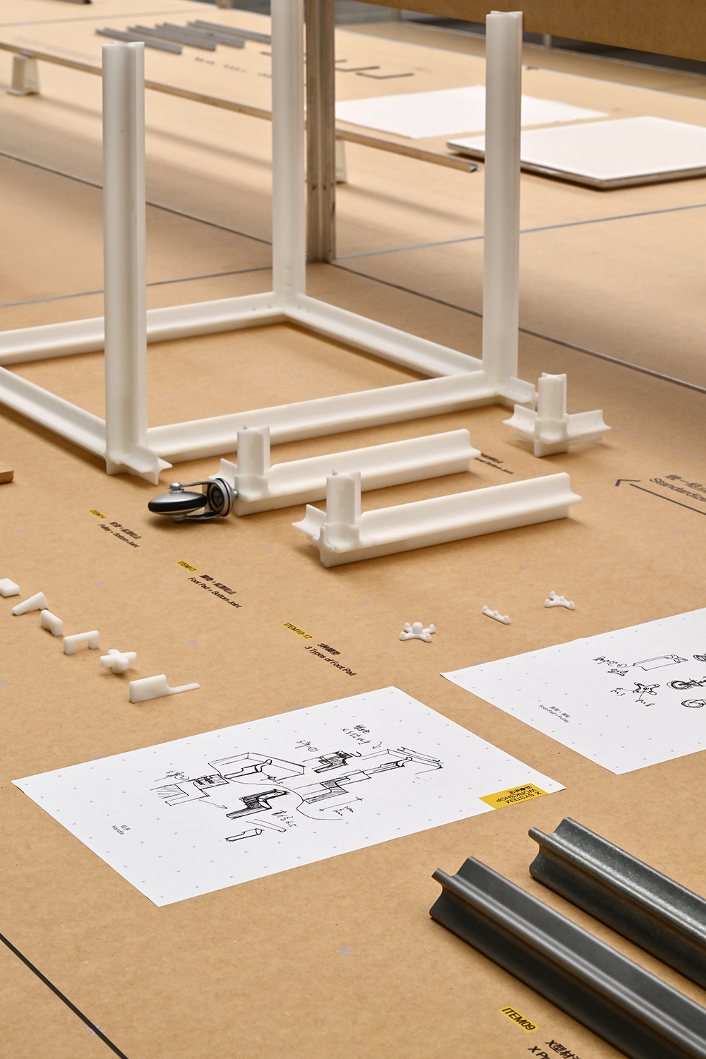 在4个研发制造“车间”之外,展览单独设定了一个“组装车间”,现场演示X System基础单元的组装过程,参观者也能参与组装体验,让产品与人的距离更为接近。在“组装操作台”的另一侧,还呈现了X System的可持续设计探索。通过回收和加工,材料和部件均可在家具、展陈等方面再次得到利用。