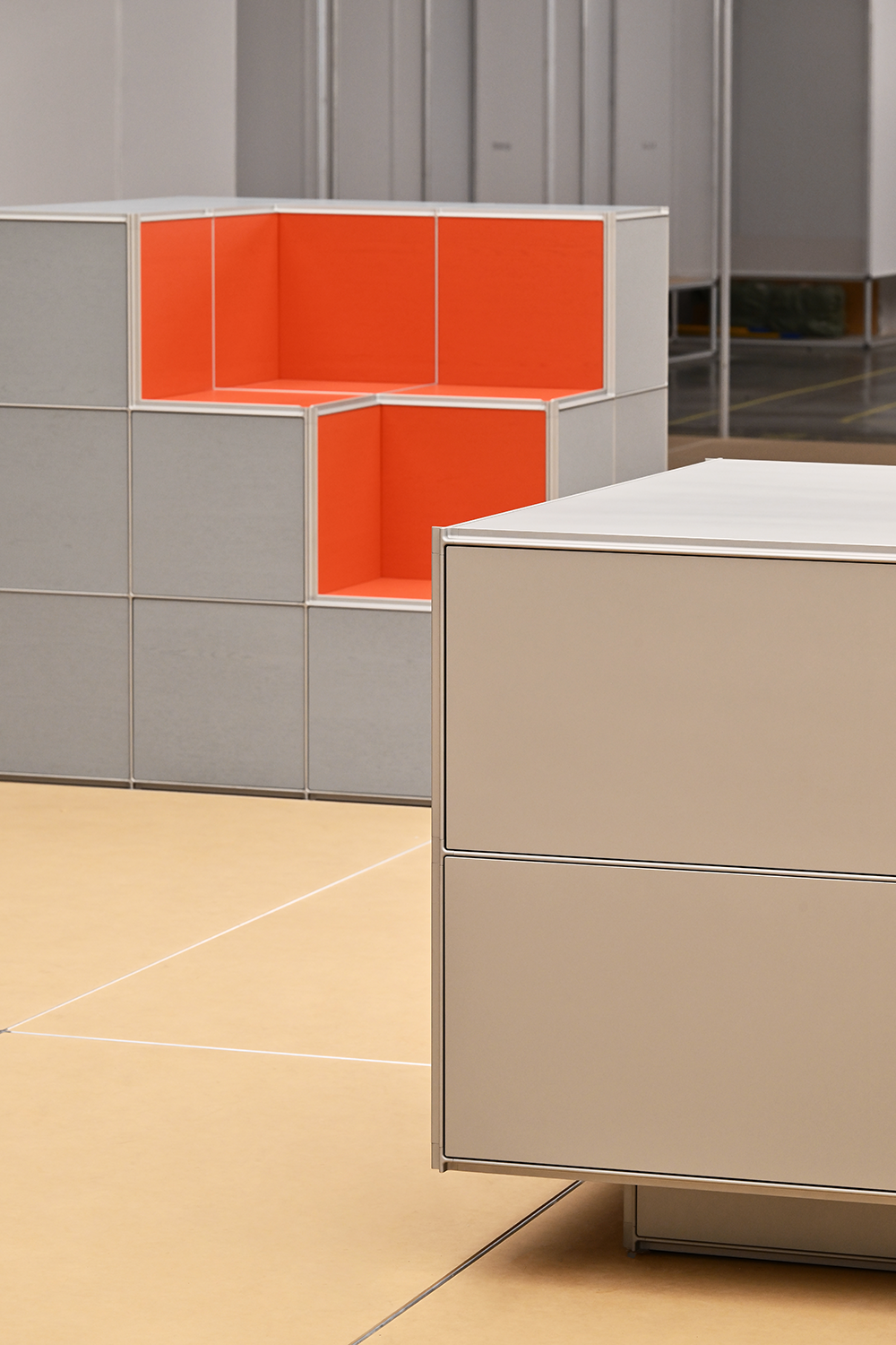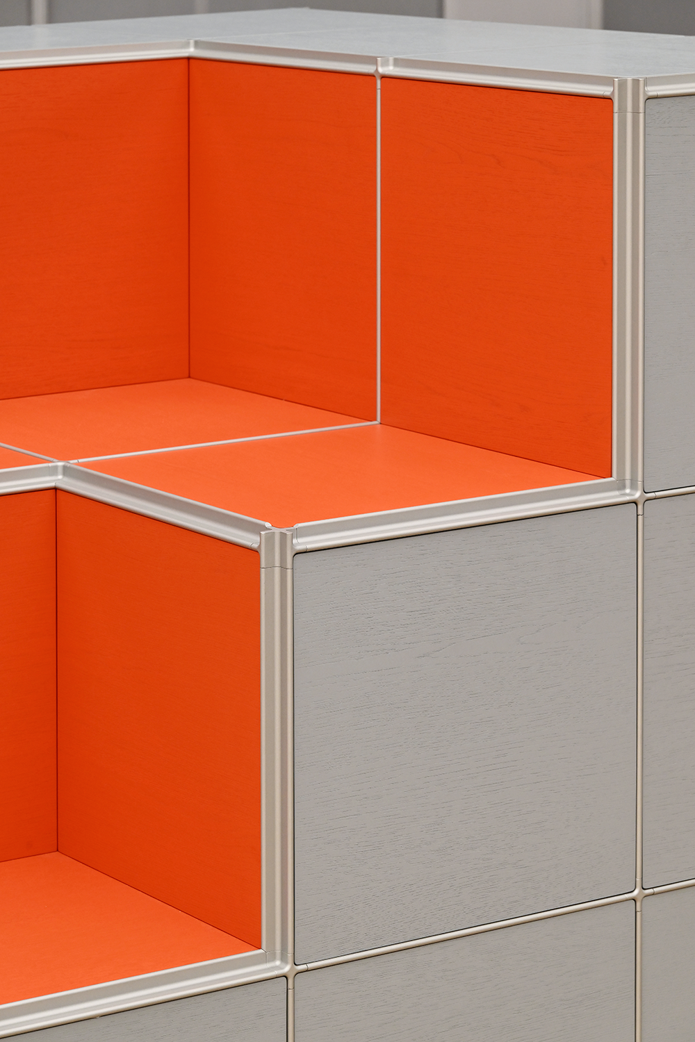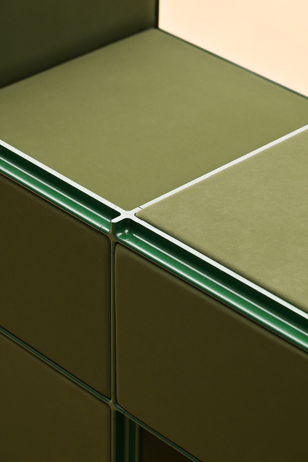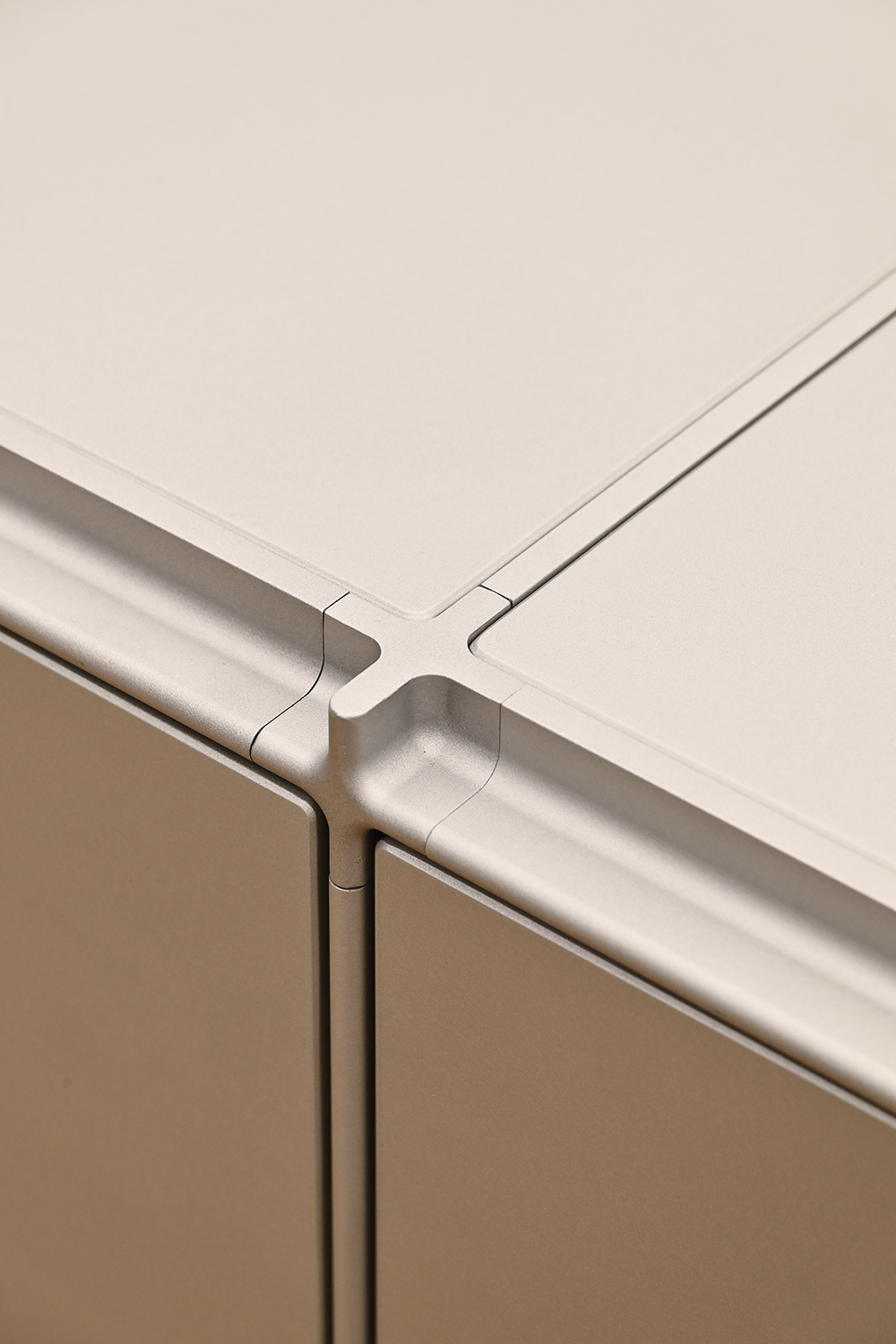 由铝型材、结点和面板构成的基础模块具备灵活的延展性,结合不同的材质和配件,可以组合出多种形态的家具。而对于生产制造而言,X System有限的零部件形态、量化的工艺标准以及精简的流程,不仅减少了因复杂工序和人工操作可能产生的误差,也令制造与设计之间有了更准确的兼容。
