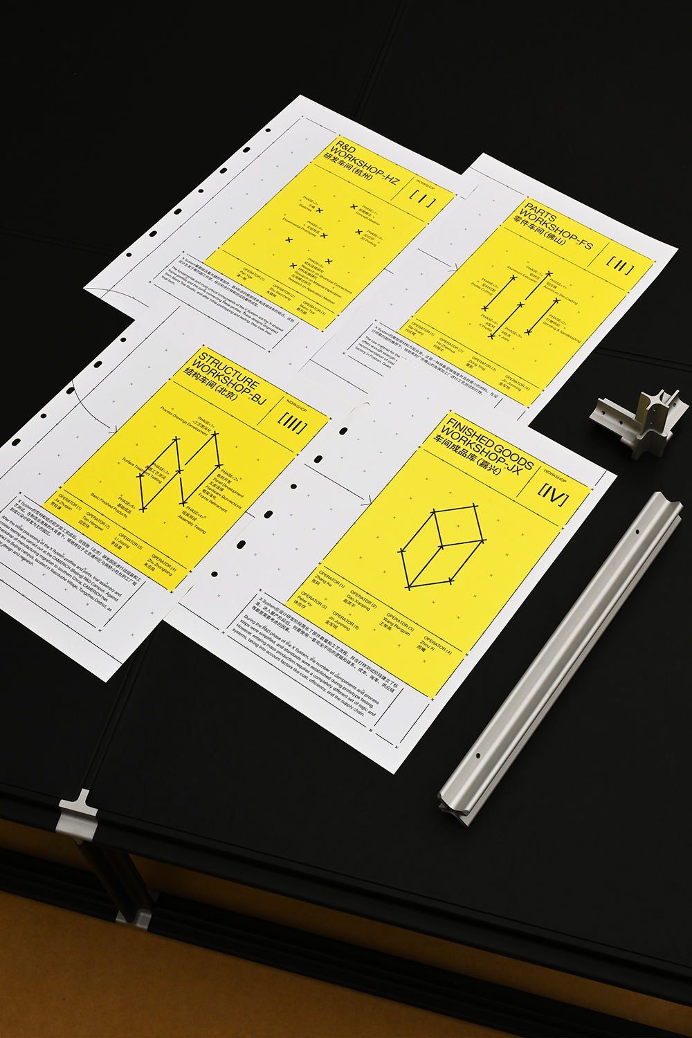 同时,展览将杭州、佛山、北京、嘉兴分别设定为研发、零件、结构、成品四个“车间”,并赋予相对应的视觉引导与展览文本。结合可以在场领取的《车间手册》中X System所关联的数十人的访谈,观展者可以深度理解四个地域所代表的研发与制造个体,如何通过这一件产品,折叠而成一个有机生态。
